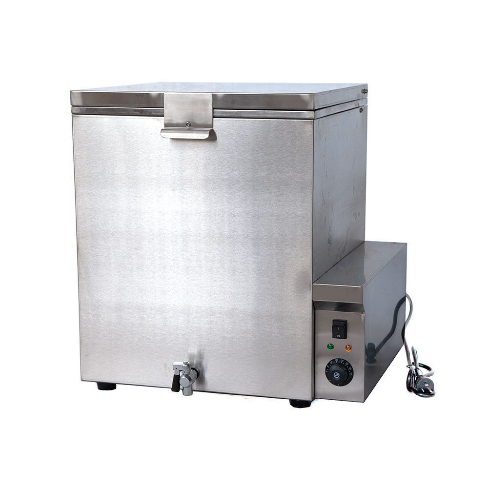 Efficient and durable poultry scalder made from rust-resistant stainless steel. Holds 120L of water and handles up to 20kg of poultry per batch. Adjustable 60–100°C thermostat, dunk basket, and drain tap included for easy use and cleaning. Perfect for chickens, ducks, turkeys, geese, and quail.
